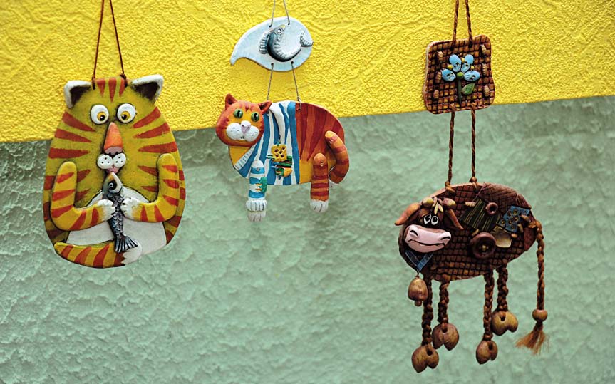 Красивые небольшие скульптурки коричневатого цвета на выставочном столике чередуются с расписанными яркими красками медальонами, подвесками и многим другим: в студии практикуют роспись по керамике. Программа занятий построена таким образом, чтобы учащиеся не уставали: живопись, лепка и роспись сменяют друг друга. Постигают и древнейший вид ювелирного искусства — технику перегородчатой эмали. Из металлических проволочек выкладывают рисунок на плоскости. Пространство между ними заполняют эмалью на основе эпоксидной смолы. А недавно освоили архитектурное моделирование и полигональное макетирование. Впечатляют макеты животных, насекомых, выполненные из бумаги или жести.