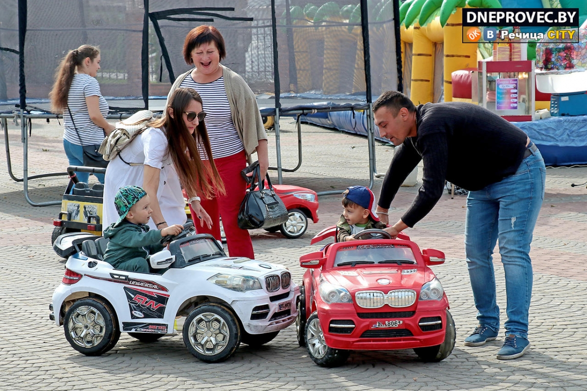 Дети могут принять участие в весёлых играх, покататься на лошадях, попрыгать на батутах, прокатиться по городу на электромобилях и посмотреть выступления своих сверстников.