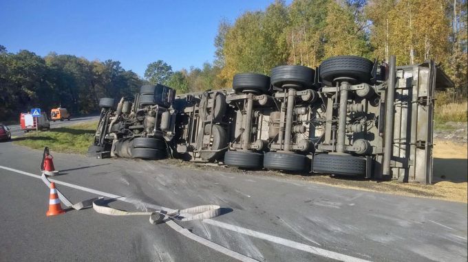 В Речицком районе перевернулся большегруз с зерном