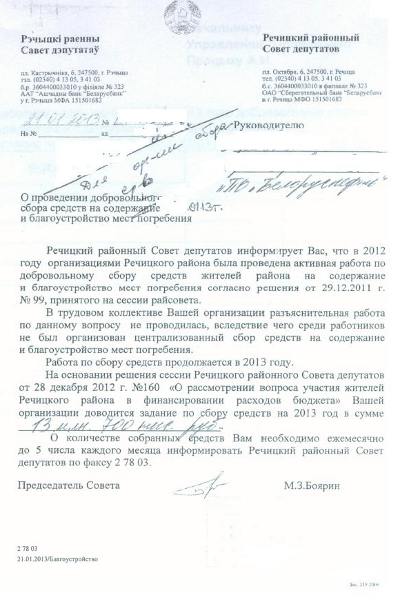 Речицкий Совет районных депутатов требует от организаций всех форм собственности средства на содержание «мест погребения».