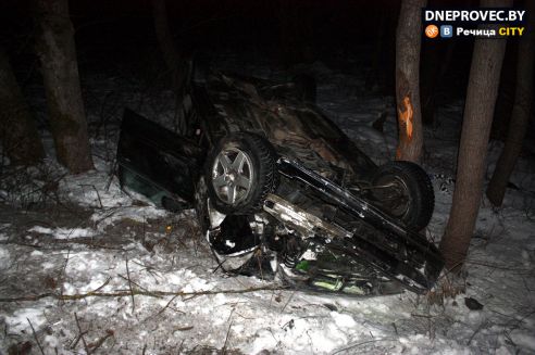 Под Речицей BMW неудачно пошел на обгон, перелетел через отбойник моста и перевернулся