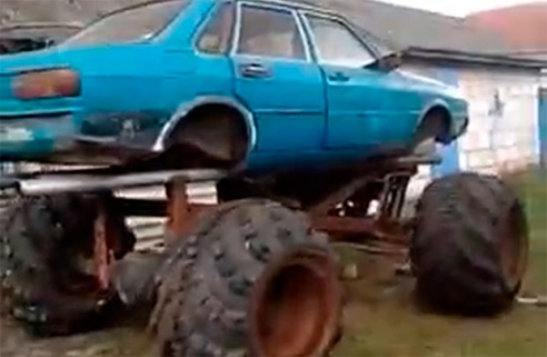Речицкий Кулибин создал монстра с корпусом легковушки и колесами трактора (видео)
