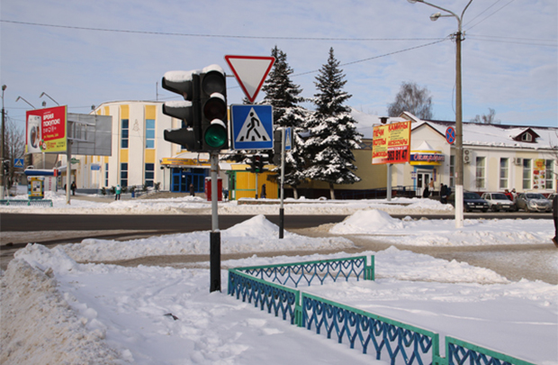 Непростая ситуация с дорожным движением сложилась на перекрестке улиц Октябрьской и Ленина, в районе Дома быта в Рогачеве.