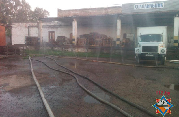 Разгерметизация радиатора случилась из-за обрушения плит перекрытия, которые повредили трубопровод. Машинисты смены перекрыли задвижки в системе, а спасатели водяной завесой сбили облако аммиака на пол. Как передает Гомельское ОУМЧС, количество выброшенно из холодильной установки аммиака не превысило 300 кг.