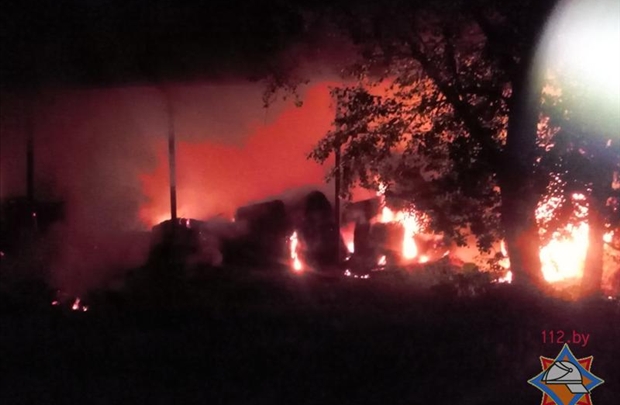 Под Рогачевом в воскресенье загорелся склад сухого сена (фото)