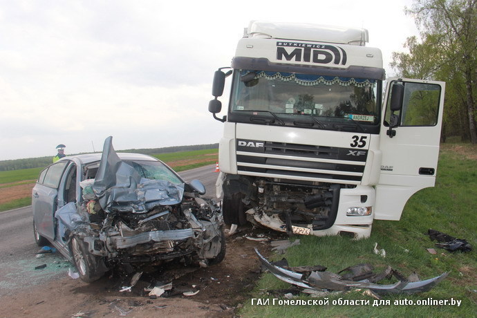 Авария произошла в 15:10 недалеко от агрогородка Довск. DAF XF с полуприцепом оказался на встречной полосе, обгоняя попутную машину.