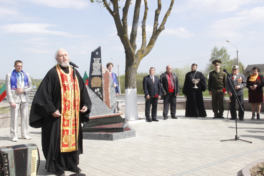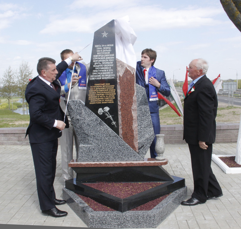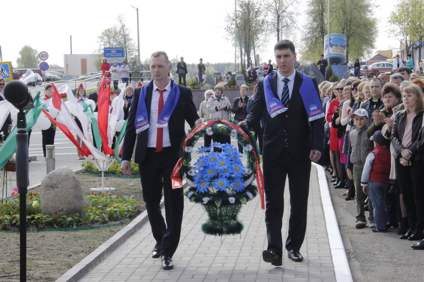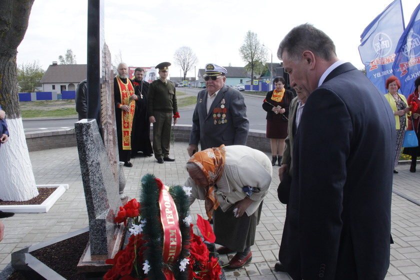С открытием мемориального знака земляков поздравили генеральный директор ОАО «Рогачёвский МКК» Иван Калупахо, заместитель председателя райисполкома Руслан Смирнов, военный комиссар Рогачёвского и Кормянского районов Константин Русаков. Все они напомнили о том, насколько важно нынешнему поколению сохранять память о подвиге советского народа и ценить Великую Победу. Право снять покрывало с обновлённого памятника было предоставлено Ивану Калупахо и ветерану труда комбината, почётному гражданину Рогачёва Борису Мефодьевичу Реве. Присутствующие не могли не отметить величественность и красоту сияющего в лучах солнца обелиска.