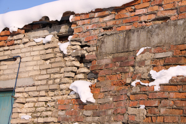 Вот в таком состоянии находится стена магазина в Омельно.