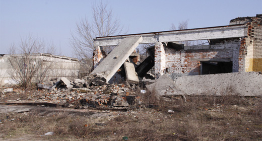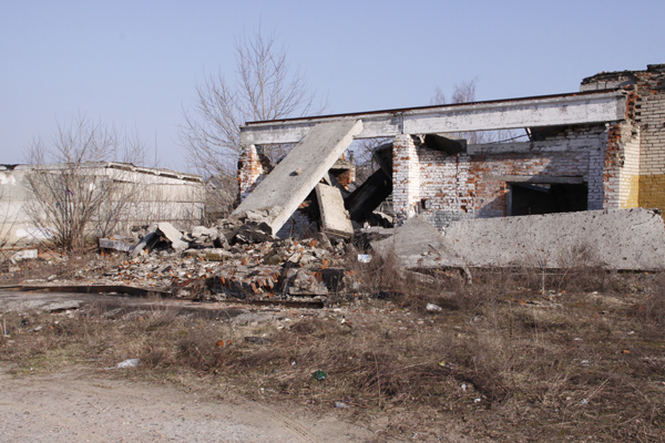 Памятник бездействию городских служб располагается прямо над прекрасным видом, который открывается позади заброшенных зданий на реку Друть. Чистоте природы симбиоз стройки и свалки, конечно, никак не способствует.