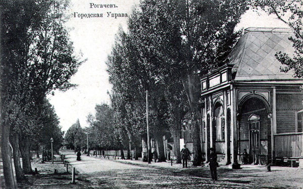 На этом снимке, который сделан в начале 20-го столетия, — здание Рогачевской городской управы.