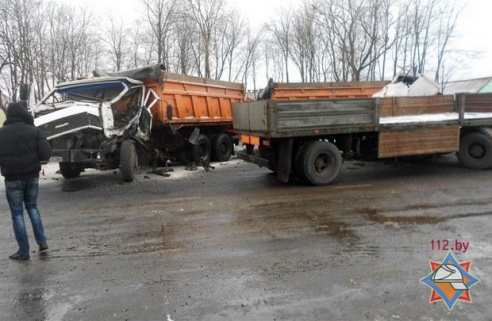 Под Рогачевом столкнулись два МАЗа – оба водителя получили черепно-мозговые травмы (фото)