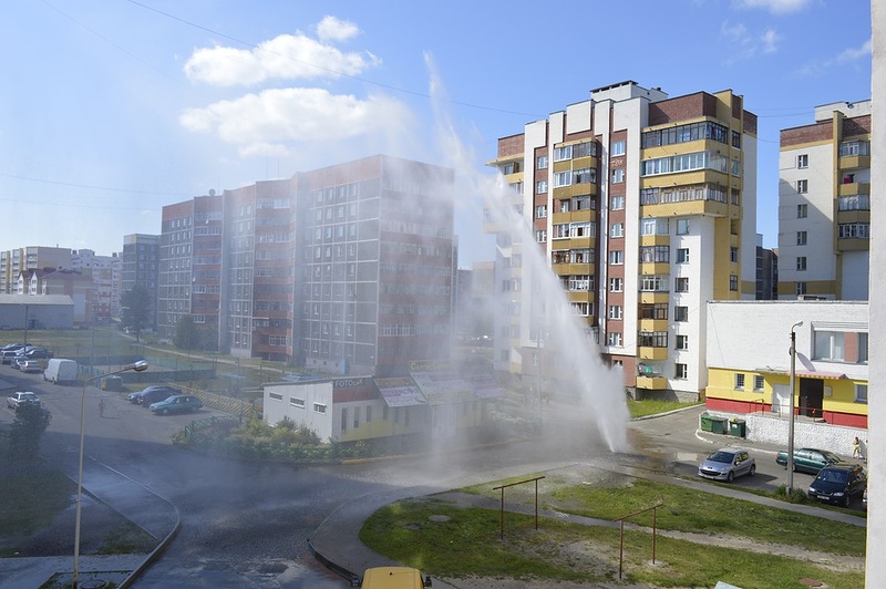 В Светлогорске 20 минут из-под земли бил фонтан высотой до 8 этажа (фото, видео)