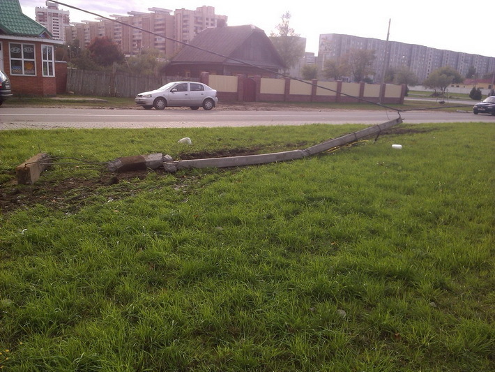 «Водила на жигуле ехал со стороны 6 м-на со скоростью близкой к 100 км/ч, возле поворота на ГАИ он коцнул в зад маленькую бирюзовую мазду и, как ни в чем не бывало, поехал дальше... За памятником афганцам он поехал к костелу и врезался в столб. Машину развернуло на 180 градусов. Пассажирка в момент разворота выпала в боковое окно», — делится в комментариях увиденным посетитель сайта под именем Ян Собесский (особенности орфографии и пунктуации сохранены).