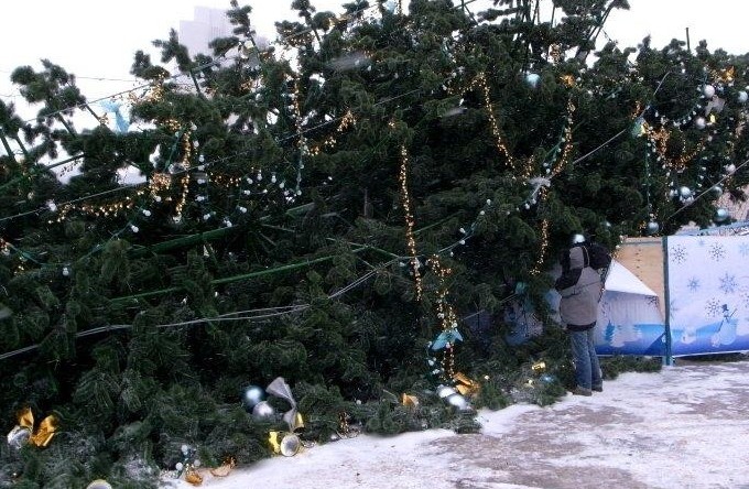 Вечером 6 января в 19:25 в 6а микрорайоне неожиданно упала новогодняя ёлка.