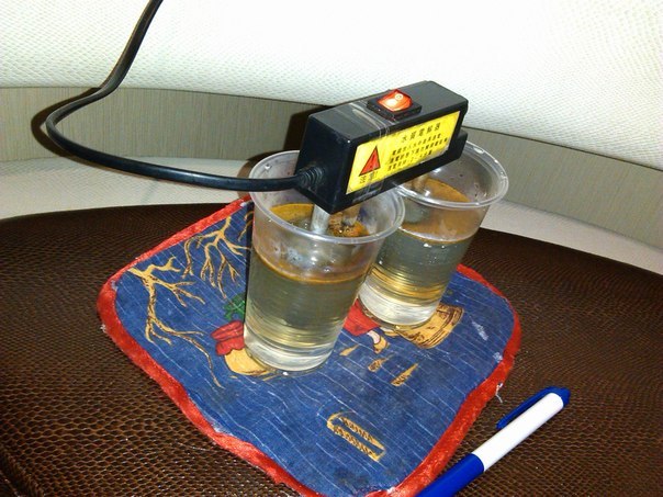 На самом деле «современным прибором» является обычный электролизатор воды, или как его еще называют «цветной тестер», а процесс называется электролизом воды. Этот «чудо – прибор» показывает наличие или