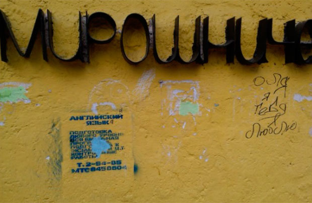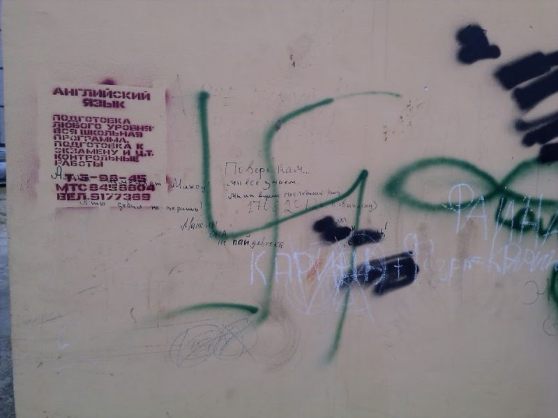 Фотофакт: в Светлогорске появляются объявления об обучении английскому, нанесенные краской на стены домов