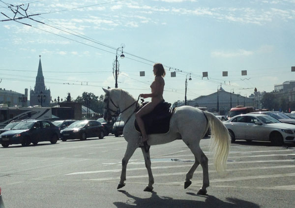 Девушка из Светлогорска, проехавшаяся голой на коне возле Кремля, попала в GQ (фото)
