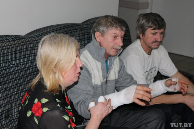 Пострадавшие от нападения волка жители д. Медведов. Вера и Анатолий Сонич, Михаил Сазуров