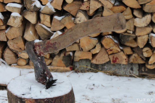 На поленнице, возле которой происходила борьба, видны брызги крови