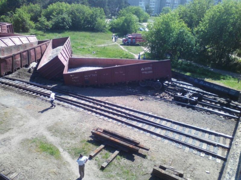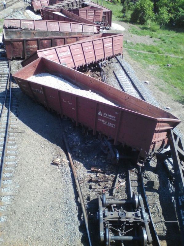 По состоянию на 15:00 опрокинутые вагоны все еще находились на путях. Железнодорожное сообщение на этом участке, очевидно, еще не было восстановлено.
