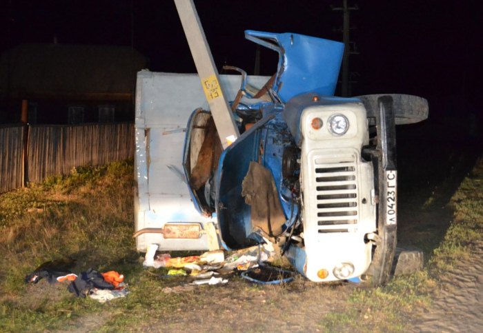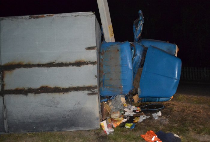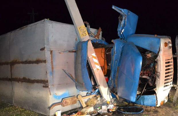 Фотофакт: в Светлогорском районе грузовой автомобиль врезался в столб, судьба водителя не известна