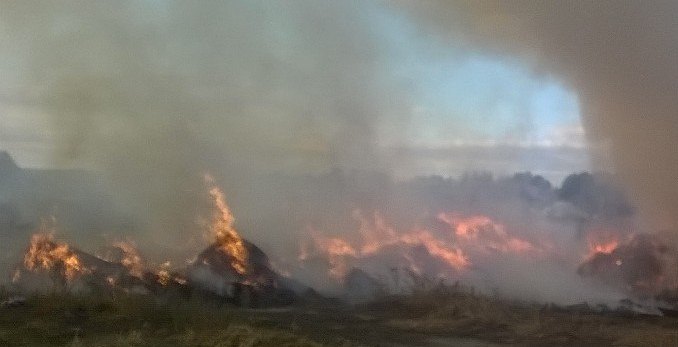 От наших читателей в редакцию поступила информация о том, что в Чирковичах что-то очень сильно горит. Позже на почту пришли фотографии и стало понятно, что пламенем объяты тюки с соломой.