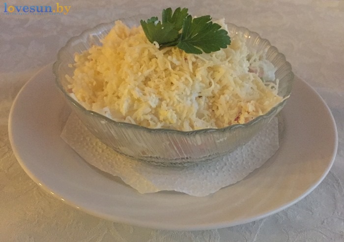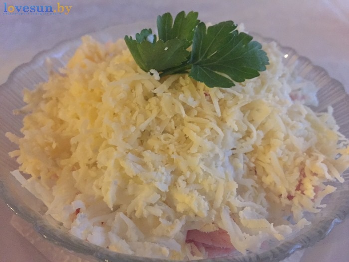 Салат-коктейль с ветчиной и сыром, а также огурцом свежим, яйцом отварным, перцем болгарским и майонезом - 24 700 рублей.