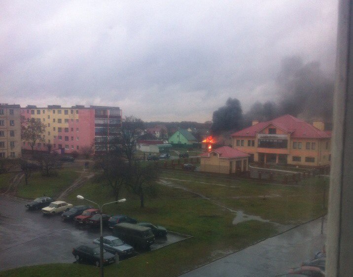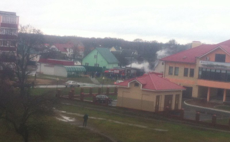 Фотофакт: напротив магазина "Славянка" в Светлогорске открытым пламенем горел гараж