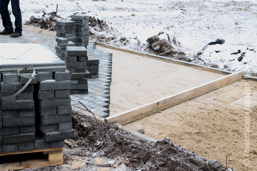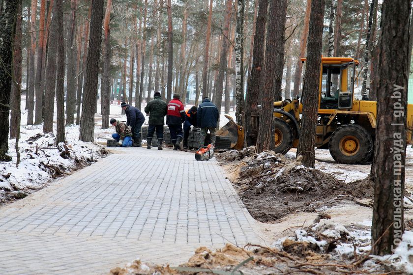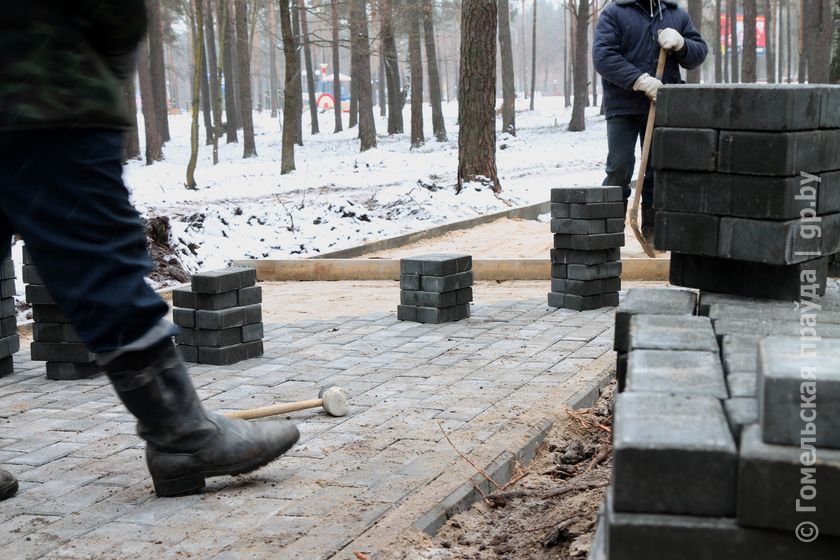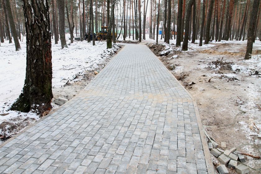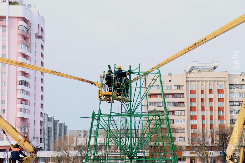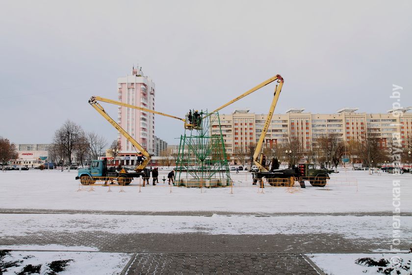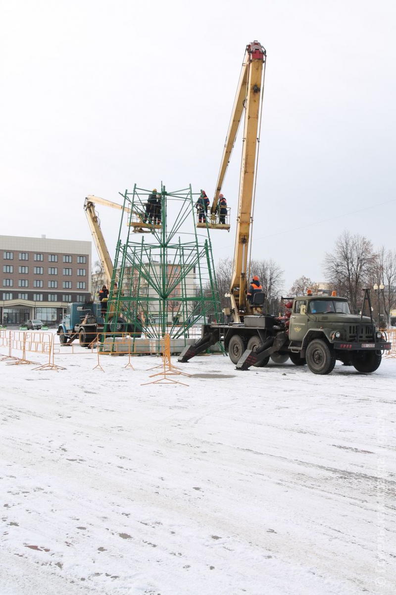 На центральной городской площади начался монтаж новогодней елки, а в парковой зоне между микрорайонами Полесье и Молодежный строители прокладывают новые пешеходные дорожки.