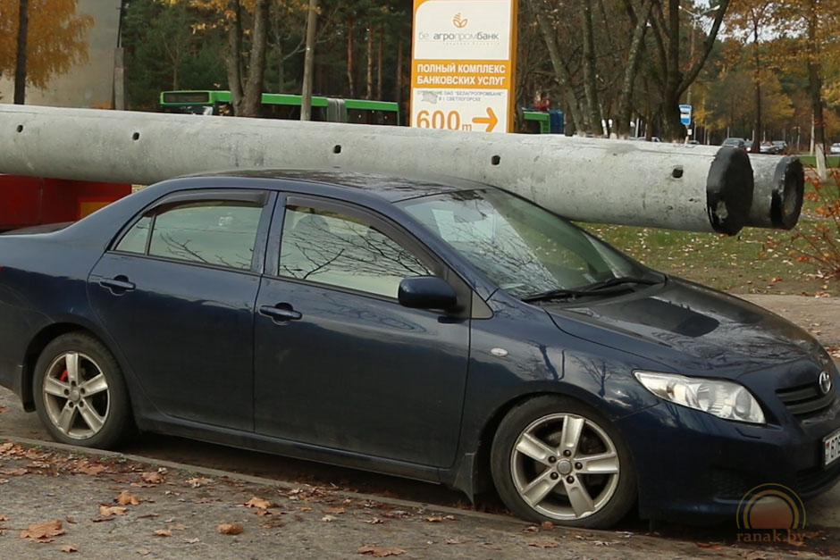 В Светлогорске грузовик, перевозивший опоры ЛЭП, зацепил Тойоту