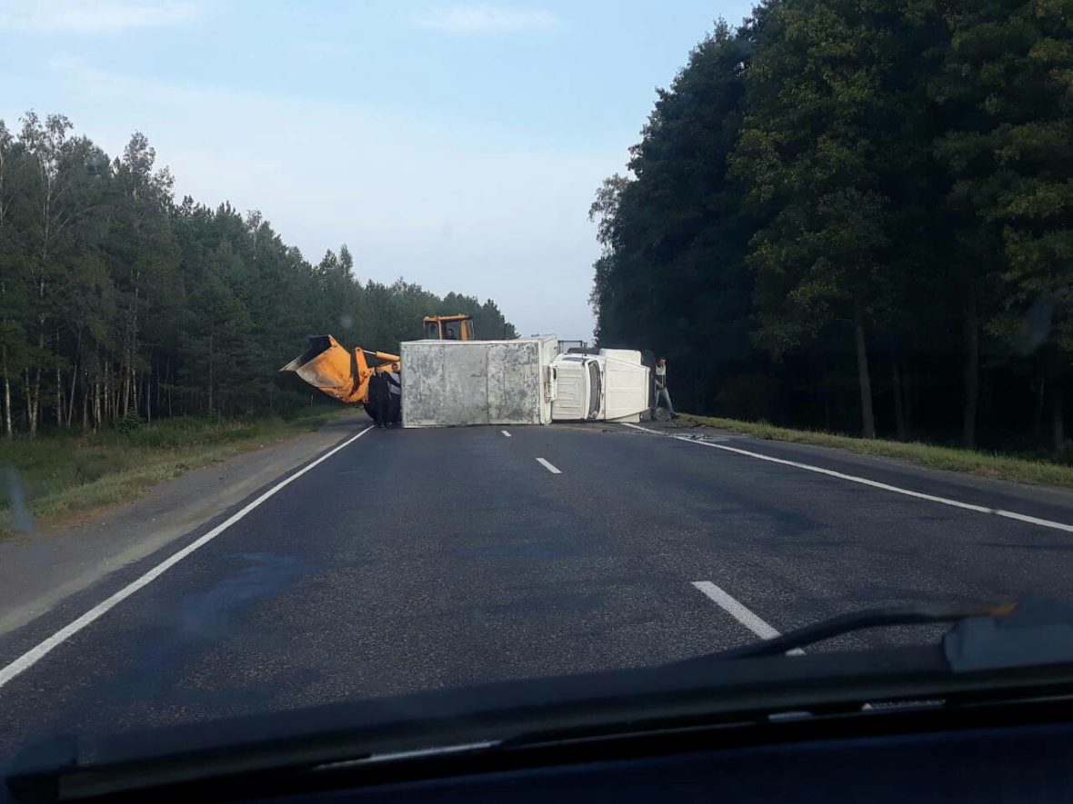 Под Светлогорском перевернулся груженый молоковоз