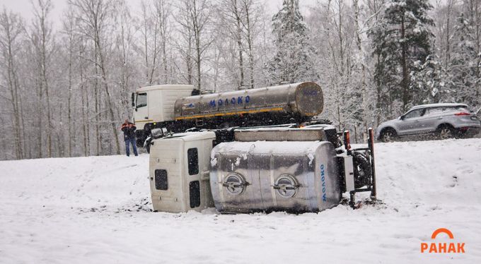 Под Светлогорском молоковоз опрокинулся в кювет