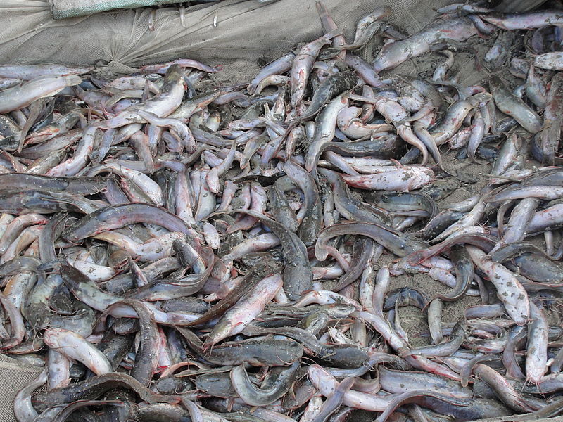 Выловленные африканские сомы, Замбия.