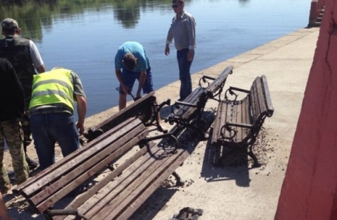 Фотофакт: в Светлогорске из реки водолазы вытащили четыре скамейки