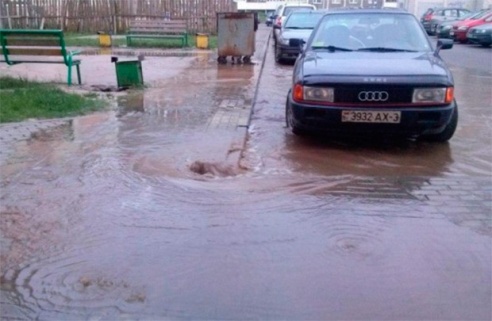 Фотофакт: В Светлогорске прорвало водопровод и затопило двор