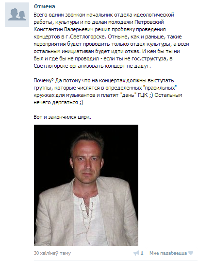 Звонок из отдела идеологии сорвал рок-концерт в Светлогорске