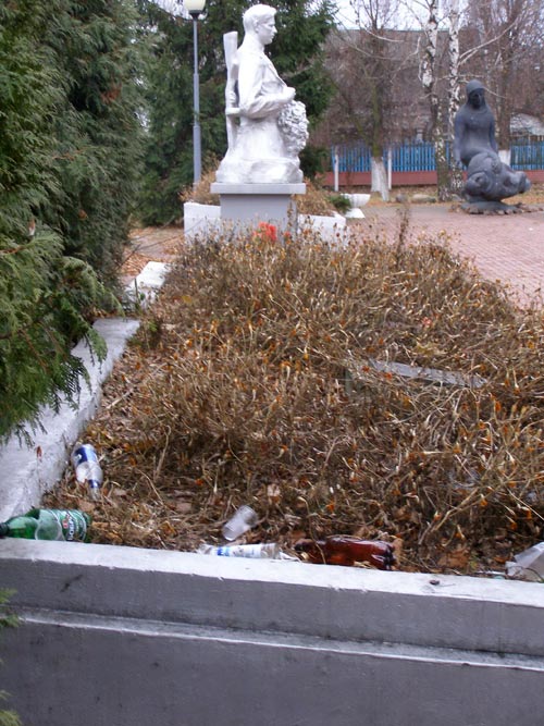 На могилах по улице Кутузова в Жлобине, где покоятся останки воинов Великой Отечественной войны, валяются бутылки из-под водки, пива, пустые пачки сигарет. Кладбище не убрано ни от листвы, ни от засохших за осень гвоздик.