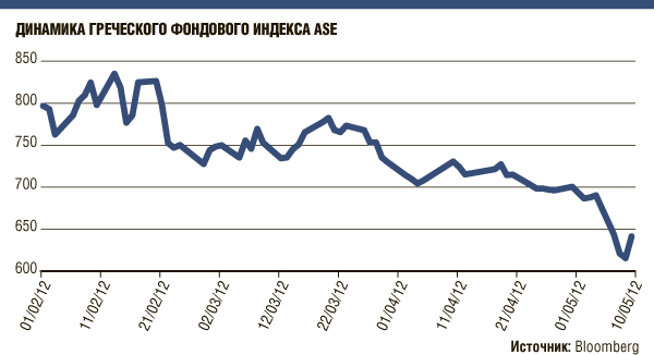 Ожидания начала распада зоны евро велики, свидетельствует опрос Bloomberg 1253 инвесторов, аналитиков и трейдеров, которые являются подписчиками агентства. Так, 57% респондентов считают, что как минимум одна страна покинет единое валютное пространство до конца 2012 года (в январе 2011 года подобного развития событий ожидали лишь 11%). При этом 80% опрошенных уверены, что нынешнее улучшение ситуации на рынке европейских государственных облигаций носит временный характер. Инвесторов тревожит целый ряд политических и экономических факторов. Главный из них политический кризис в Греции, где после выборов победившие партии никак не могут сформировать коалиционное правительство. Ранее лидер леворадикальной СИРИЗА Алексис Ципрас, получивший второе место по числу мандатов в парламенте, призвал своих оппонентов из ПАСОК и «Новой демократии» пересмотреть достигнутые ранее соглашения с ЕС о санации бюджета страны. Это ставит под сомнение получение дальнейшей финансовой помощи Афин от ЕС. Впрочем, де-факто почти никто уже не верит, что Афины смогут придерживаться установленных проверяющими «тройки» параметров бюджетного дефицита. Основные греческие фондовые индексы на этой неделе упали до минимальных за 20 лет уровней.