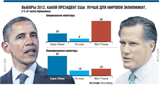 В опросе приняли участие 1253 инвестора, аналитика и трейдера, которые являются подписчиками агентства. Обама «неплохо управлял экономикой США, сумев ликвидировать множество дисбалансов, оставленных прежней администрацией», — отметил старший портфельный управляющий Eurizon Capital Марио ди Марантонио. По его мнению, переизбрание Обамы принесет стабильность и улучшит инвестиционный климат.
