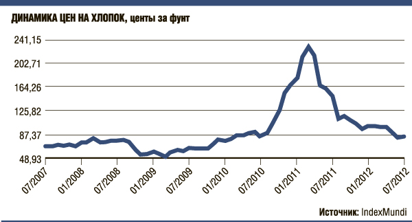 На данный момент хлопок является одним из самых волатильных товаров на бирже. Чтобы обезопасить себя от скачков цен, торговцы страхуются при помощи фьючерсных контрактов. Однако значительный рост цен на волокно в 2010 году и последующий за ним спад в 2011 году заставили многих продавцов, а затем и покупателей расторгнуть заключенные ранее сделки, пишет The Wall Street Journal.
