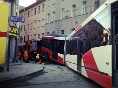 В Санкт-Петербурге разорвался пополам трамвай-гармошка