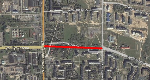 Обновлено. Один из масштабных проектов Гродно - продление улицы Курчатова от Дзержинского до улицы Лиможа. В текущем году начнется строительство 650-метрового прямого участка дороги через деревню Девятовка со сносом 11 жилых домов. Для этих работ будет использован резерв грунта, оставшийся от сооружения северо-западного полукольца.