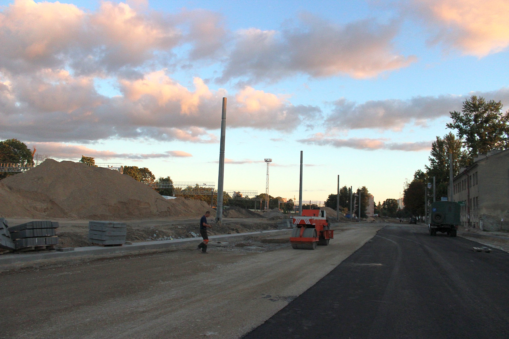 Со стороны железнодорожных путей уже снесены все домовладения, которые были предусмотрены проектом. Примерно треть улицы готова для укладки асфальта.