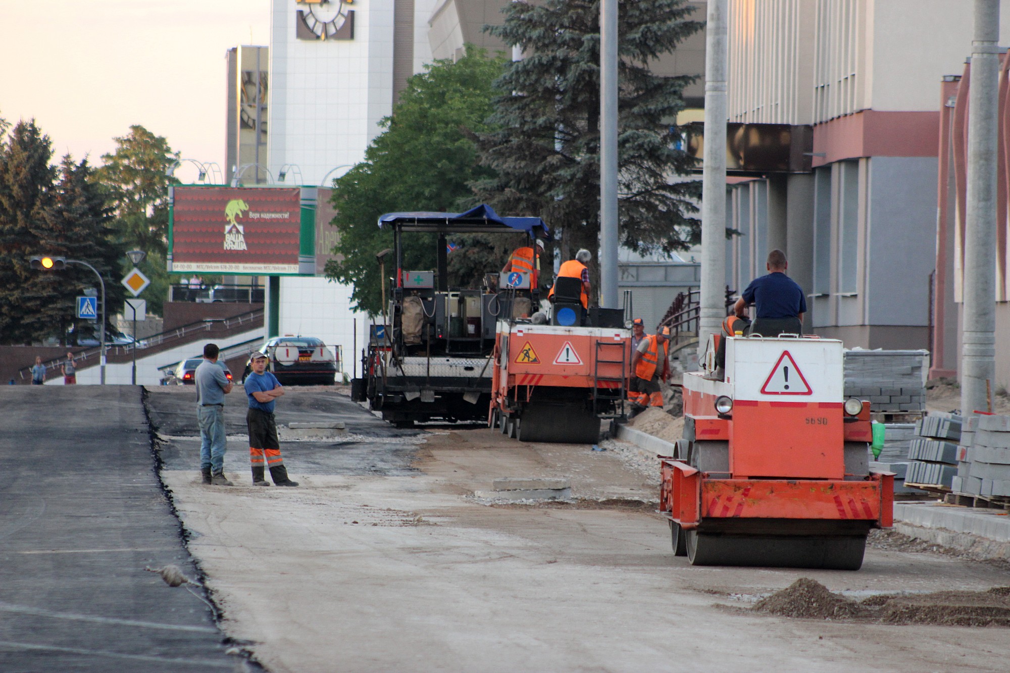 2 августа началась укладка первого слоя асфальто-бетонной смеси. Всего же асфальт будет уложен в три слоя: