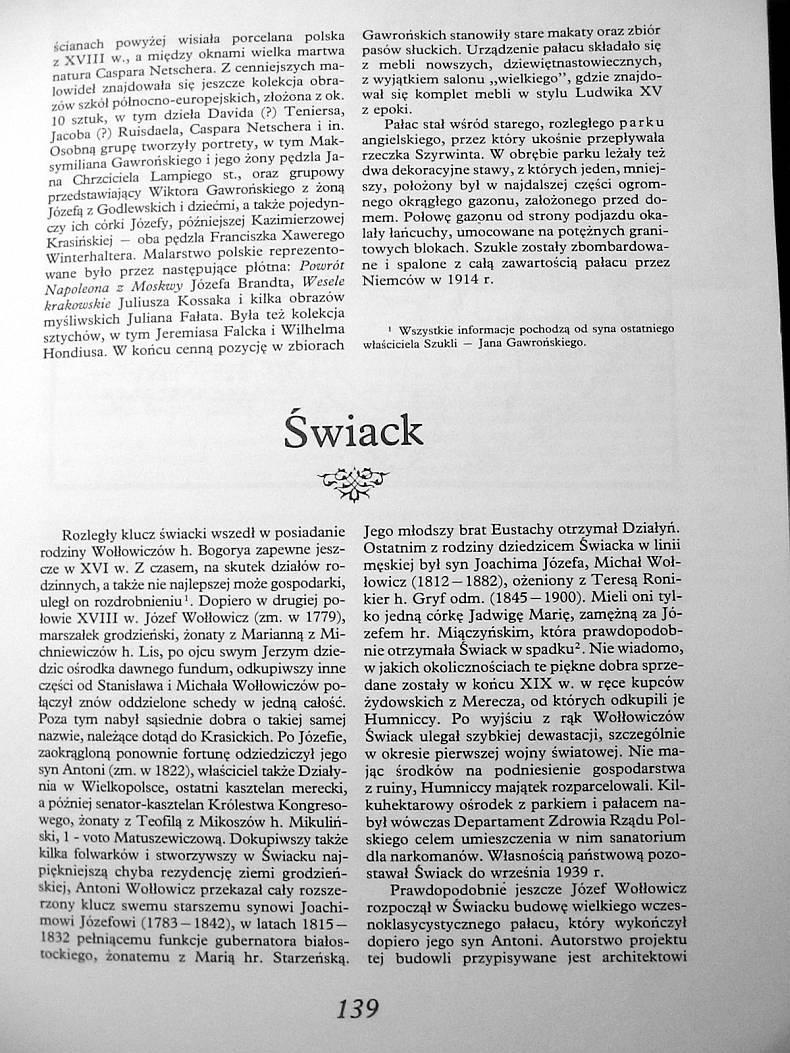 Можа варта заплюшчыць вочы, сказаўшы сабе: хай робяць які захочуць дах, абы аднавілі сам будынак? Але гэта было б безумоўным злачынствам! Кожны, хто быў у Свяцку, бачыў, што высокі дах – гэта галоўнае, што прыдае палацу ўрачыстасці і велічнасці.