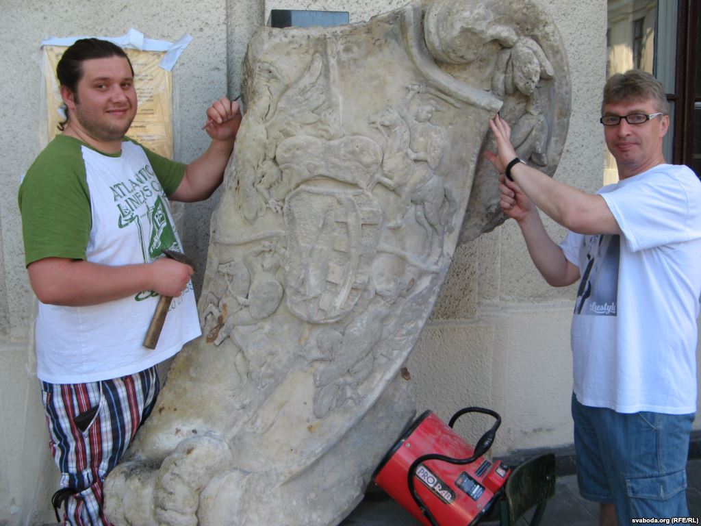 Вырашыў я распачаць зараз наступны нумар альманаху «Новы замак» здымкам з паведамленьнем аб тым, што супрацоўнік міністэрства культуры з Варшавы Марэк Малюхнік і рэстаўратар Радаслаў Тушнё ачысьцілі гербавы картуш Новага замку, які захаваўся ў пашкоджаным стане з часоў Аўгуста ІІІ, і паставілі перад уваходам у замак. Адразу супраціў: нашто мы будзем гэтых палякаў праслаўляць?! Ну, раз мясцовае начальства не дадумалася, трэба сказаць дзякуй палякам, так, па-мойму. Да слова: сам кароль Аўгуст ІІІ быў немцам, саксонцам.