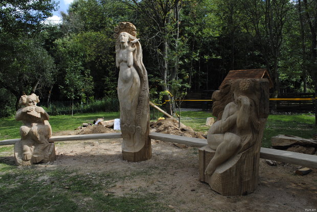 18 резчиков по дереву с 6 по 15 августа приняли участие в 5 международном пленере резчиков. Каждый год организаторы предлагают мастерам определенные темы для творчества. В этом году мастерам резьбы по дереву предстояло создать не просто деревянные фигуры, а скамейки с фигурами – “Наши знаменитые земляки”, пишет tutgrodno.com.