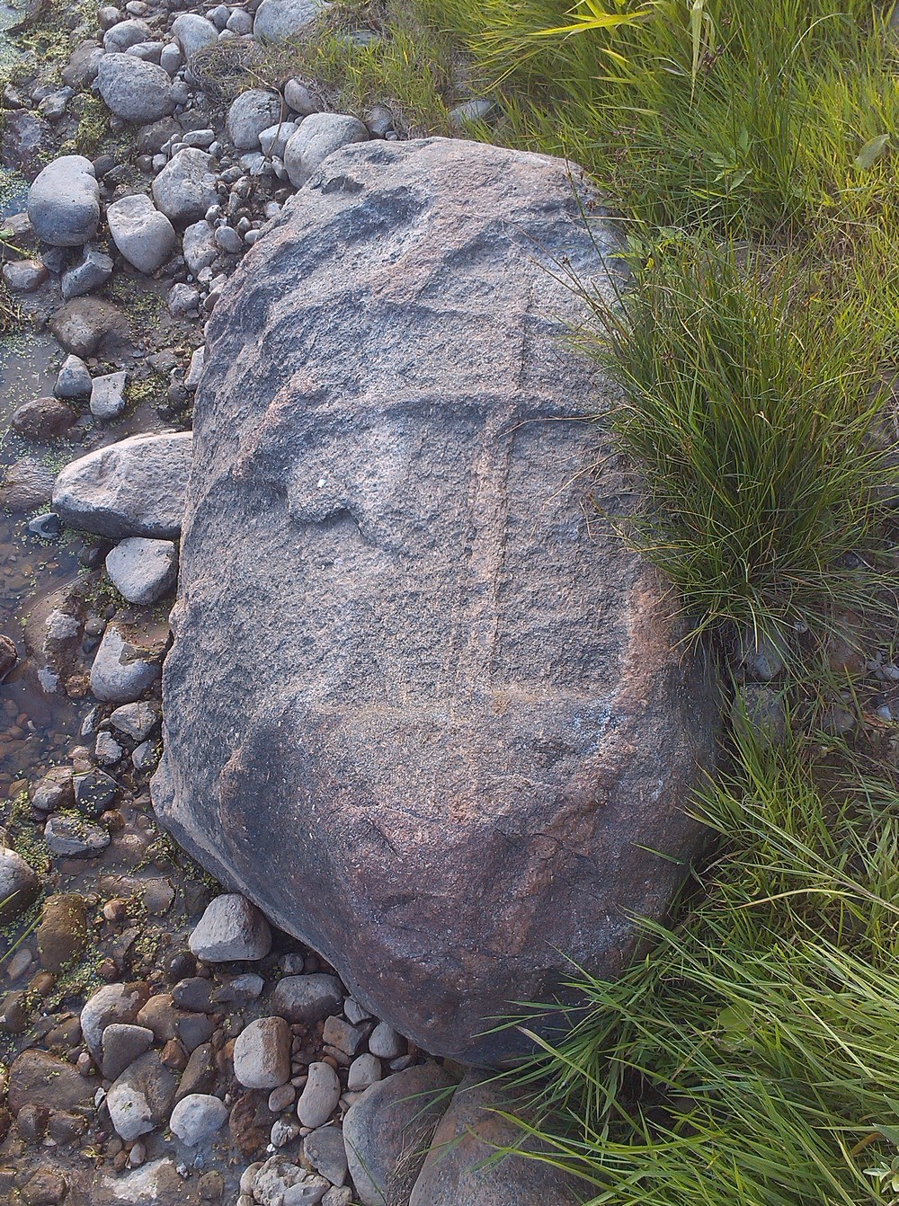 Многие годы прохожие могли наблюдать частично торчащий из воды у берега камень. Казалось, что он самый обычный, но с отступлением воды от берега на десятки сантиметров на камне обнажился высеченный шестиконечный крест.