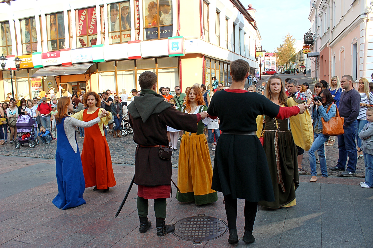 На фестиваль приехали жонглеры, мимы, фокусники, эквилибристы, уличные театры, живые статуи и музыканты. Каждый мог найти себе занятие по вкусу. Мастер-класс по средневековым танцам оживил публику у сцены.