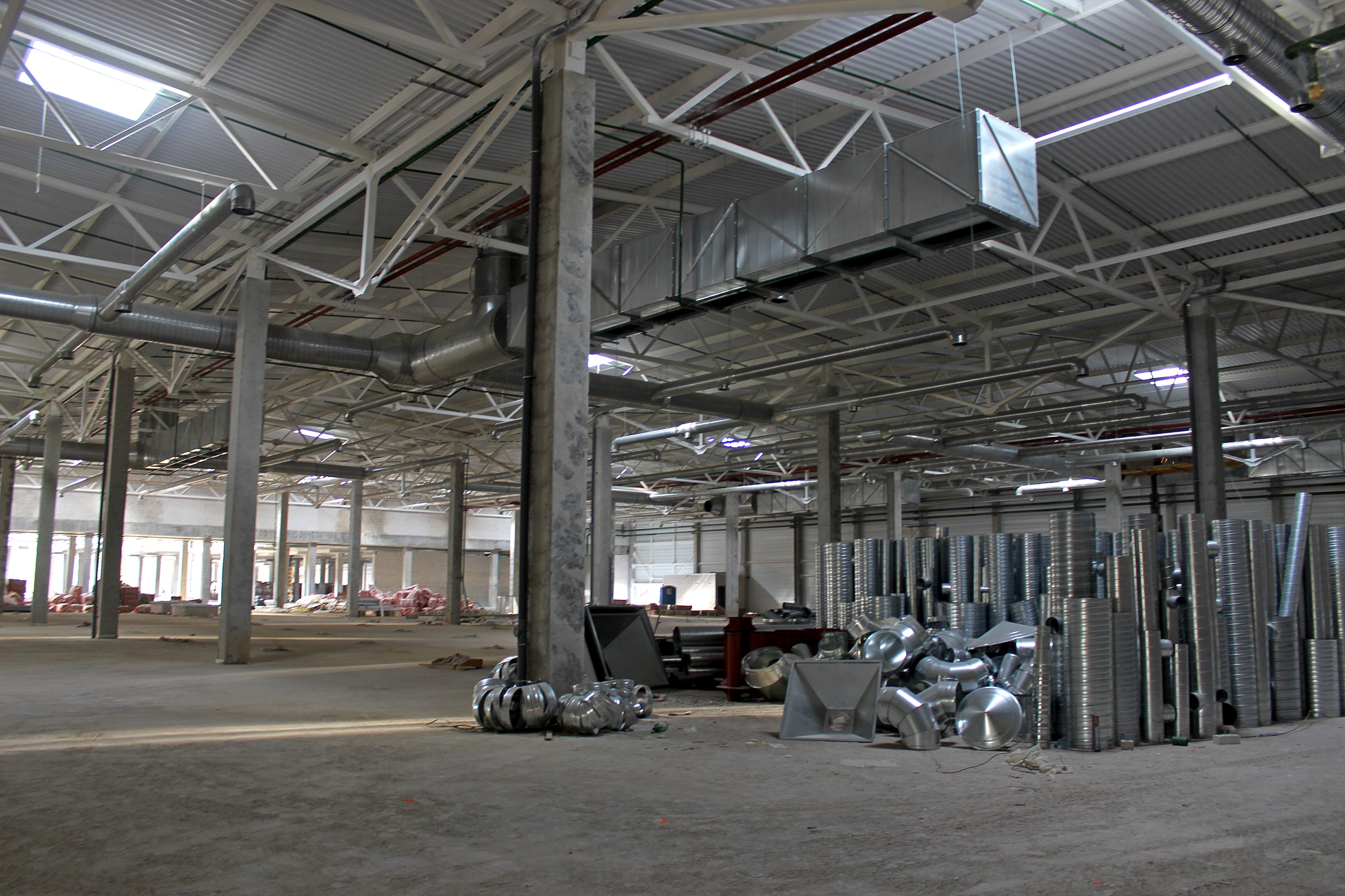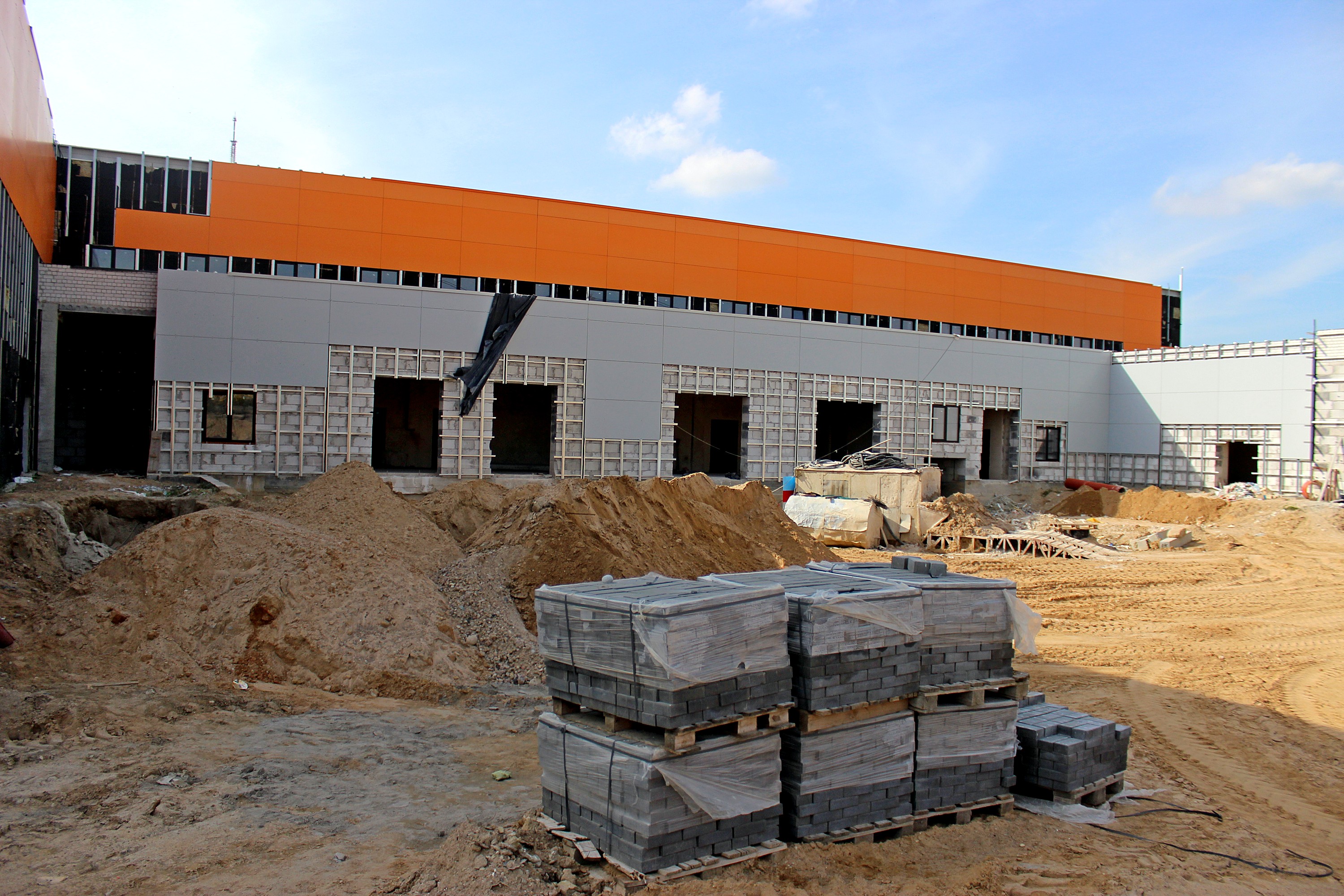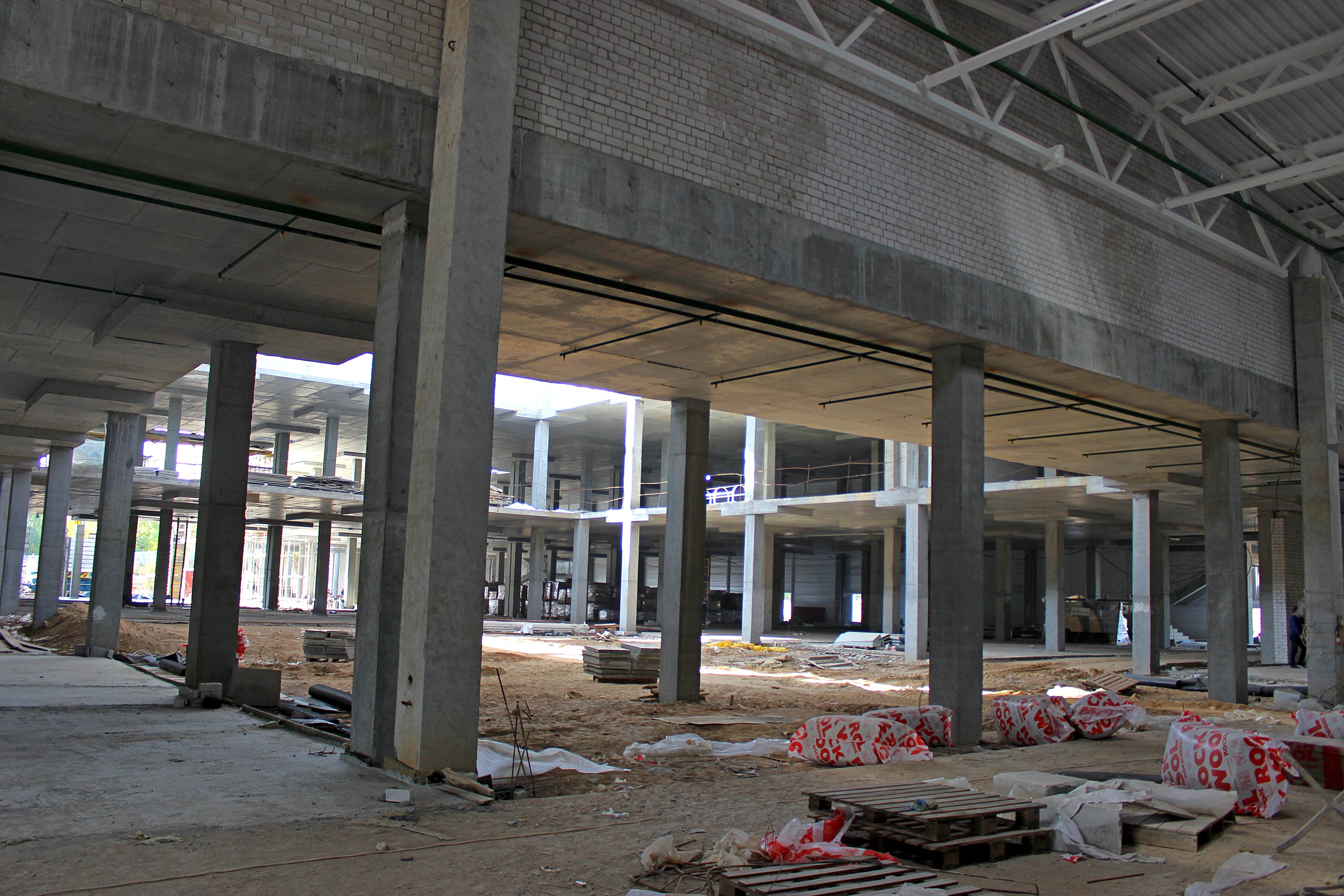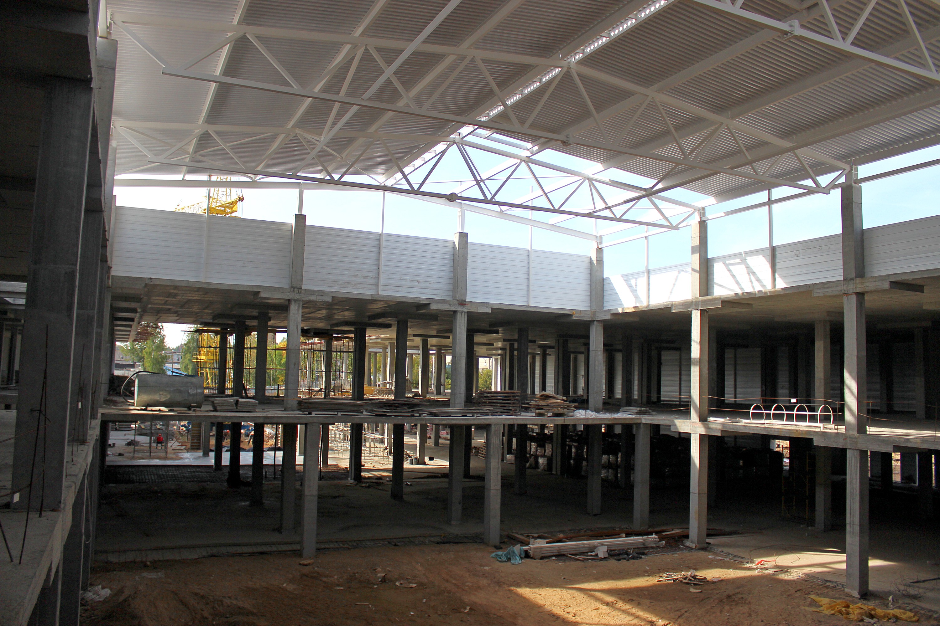 На сегодняшний день на объекте проводятся электромонтажные работы, закончены работы по монтажу системы вентиляции в гипермаркете торгового центра. Также проведены работы по прокладке внутренних сетей водоснабжения и канализации, и уже начаты внутренние отделочные работы в части гипермаркета.